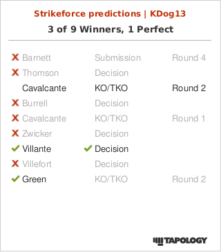 This fight definitely should be for the Strikeforce Light Heavyweight Championship, but it’s not. The light heavyweight division is depleted, and this is the two best guys in it, going at it. But despite that, this fight should be a really good one, and a rematch in which Kyle KO’d Cavalcante back in 2009. Kyle since that fight has gone 6-2-1, while going back and forth between fighting at heavyweight and light heavyweight. Kyle carries some heavy power, as well as a decent all around MMA game. He is mostly noted as a striker though. Cavalcante since that fight is 4-1, and once held the Strikeforce Light Heavyweight Belt. Cavalcante is the better all around fighter, and has some devastating power in his hands.I expect Cavalcante to knock out Kyle at some point in the fight, as Kyle gasses and succumbs to “Feijao’s” standup.